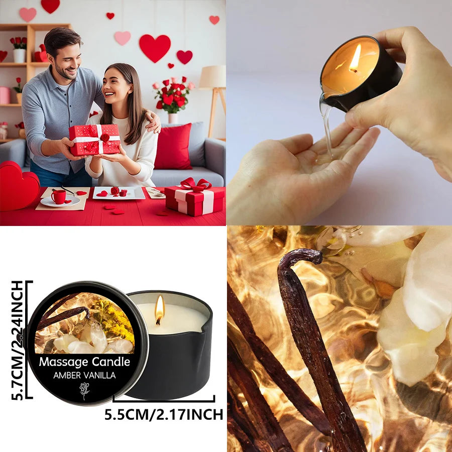 Amber Vanilla Massage Candles Soy Wax Scented Gift Idea