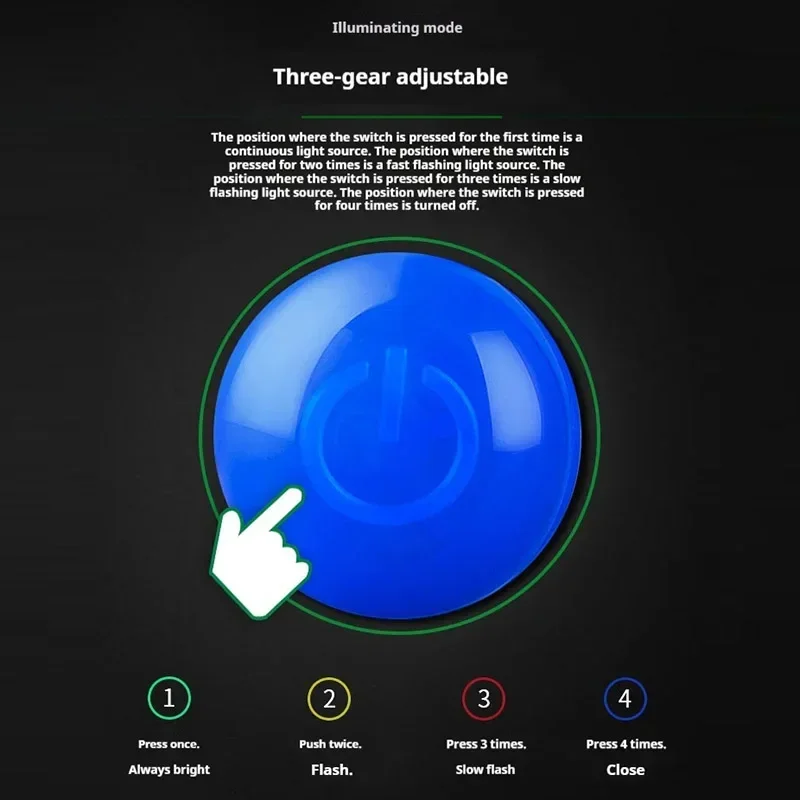 Instructions for use : Pressing once is a continuous light source, and pressing twice is a flashing light source.
